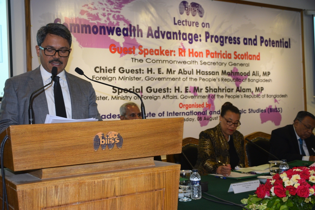 Bangladesh Institute of International and Strategic Studies (BIISS) organised a Seminar on "Commonwealth Advantage: Progress and Potential" on 08 August 2018 at BIISS auditorium in Dhaka. H. E. Mr Abul Hassan Mahmood Ali, MP, Ministry of Foreign Affairs, Government of the People's Republic of Bangladesh was present in the seminar as the Chief Guest. H. E. Mr Shahriar Alam, MP, State Minister, Ministry of Foreign Affairs, Government of the People's Republic of Bangladesh was present in the seminar as the Special Guest H. E. Rt Hon Patricia Scotland, the Commonwealth Secretary General was present as the Guest of Honour. Ambassador Munshi Faiz Ahmad, Chairman, Board of Governors, BLISS, chaired the session. Major General A K M Abdur Rahman, ndc, psc, Director General, BIISS delivered the address of welcome.