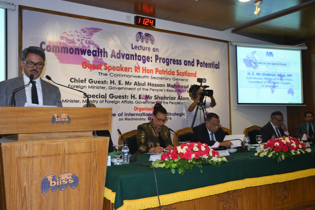 Bangladesh Institute of International and Strategic Studies (BIISS) organised a Seminar on "Commonwealth Advantage: Progress and Potential" on 08 August 2018 at BIISS auditorium in Dhaka. H. E. Mr Abul Hassan Mahmood Ali, MP, Ministry of Foreign Affairs, Government of the People's Republic of Bangladesh was present in the seminar as the Chief Guest. H. E. Mr Shahriar Alam, MP, State Minister, Ministry of Foreign Affairs, Government of the People's Republic of Bangladesh was present in the seminar as the Special Guest H. E. Rt Hon Patricia Scotland, the Commonwealth Secretary General was present as the Guest of Honour. Ambassador Munshi Faiz Ahmad, Chairman, Board of Governors, BLISS, chaired the session. Major General A K M Abdur Rahman, ndc, psc, Director General, BIISS delivered the address of welcome.