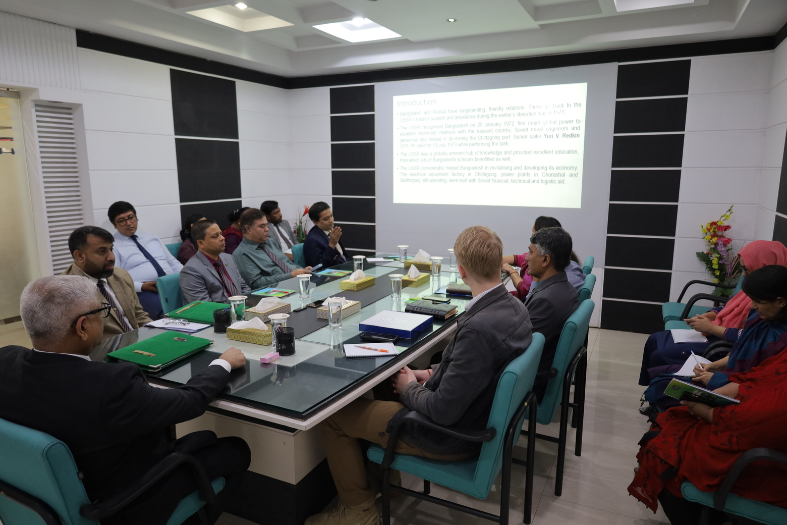 Mr. Arthur Makhlaluk, St. Petersburg University, Russia, attended the event as the Guest Speaker. He delivered a presentation on, "Russia's View towards South Asia and Russia-Bangladesh Relations".