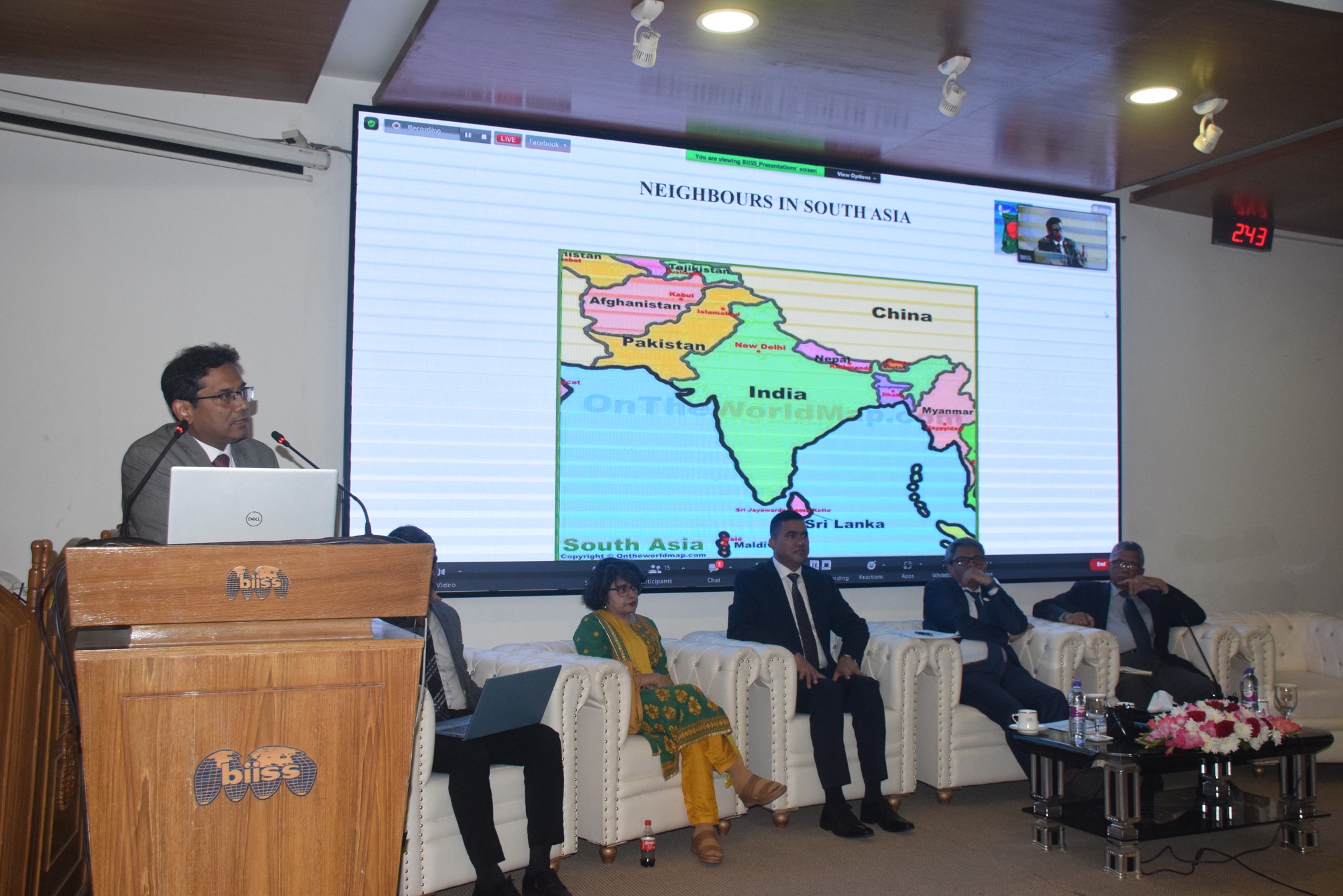 The Bangladesh Institute of International and Strategic Studies (BIISS) organised a seminar on "Strengthening Bangladesh’s Foreign Relations with Neighbours in the Evolving Global Order" on Tuesday, 24 January 2023 at the BIISS Auditorium. H E Mr Md Shahriar Alam, MP, Hon’ble State Minister, Ministry of Foreign Affairs, Government of the People’s Republic of Bangladesh was the Chief Guest. Major General Sheikh Pasha Habib Uddin, OSP, SGP, BAMS, afwc, psc delivered the welcome address. The Session Chair of the event was Ambassador M Humayun Kabir, President of Bangladesh Enterprise Institute (BEI). Four presentations were made in the Seminar on different important topics. Dr Lailufar Yasmin, Professor and Chairperson, Department of International Relations, University of Dhaka made a presentation on 'Navigating Bangladesh’s Foreign Relations with the Neighbours in the Evolving Global Order.” Mr A T M Rokebul Haque, Director General, South Asia Wing, Ministry of Foreign Affairs made his presentation on 'Bangladesh’s Foreign Policy towards her Neighbours: Friendship with Prosperity.’ Dr M Mahfuz Kabir, Research Director, International Studies Division, BIISS presented on 'Exploring New Avenues of Cooperation with the Neighbours.' Finally, Mr M Ashique Rahman, Senior Research Fellow, BIISS delivered on 'Sustaining Bangladesh’s Relations in the Extended Neighbourhood.'